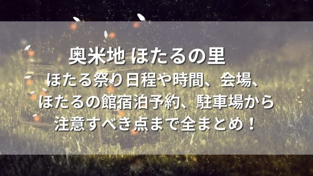 奥米地 ほたるの里の見ごろやアクセスの仕方、ほたる祭り2025の日程や時間、会場、見頃時期、ホタルの館の宿泊予約情報や、観光で立ち寄りたい周辺おすすめスポットをお話していきます。ほたるの里は、兵庫県養父市養父町奥米地(やぶし やぶまち おくめいじ)にある有名なホタルの観賞スポットです。ゲンジボタルの保護区ともなっていて、見ごろになるとほたるの群生が見られ、ほたる祭りも開催されます。また、ほたるの館や「めいじ」、バンガローなどのという宿泊施設があり、蛍の見頃時期になると予約して行く方もいらっしゃいます。奥米地 ほたるの里の見ごろやアクセスの仕方、ほたる祭り2024の日程や時間、会場、見頃時期、ホタルの館の宿泊予約情報や、観光で立ち寄りたい周辺おすすめスポットをお話していきます。