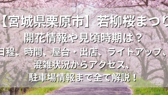 この記事では宮城県栗原市の花見スポット、迫川沿岸や鉄道公園(くりでんミュージアム)で開催される若柳桜まつり2025年の開花情報や見頃時期、イベントの日程、時間、場所などの基本情報から屋台・出店、ライトアップ、混雑状況、アクセス、駐車場情報まで全て分かりやすく解説します。