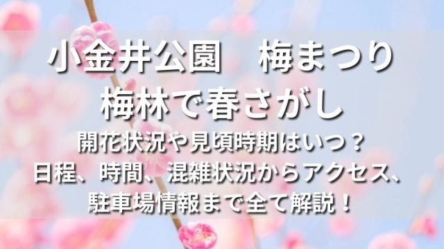 梅まつり・梅園小金井公園 梅まつり2025の開花状況や見頃時期はいつ?アクセス、駐車場、口コミ・レビューまで全て解説! この記事では東京都小金井市の都立小金井公園 梅まつり2025の開花状況や見頃時期、イベントの日程、時間などの基本情報から屋台、出店、混雑状況、アクセス、駐車場情報まで全て分かりやすく解説します。梅まつり・梅園