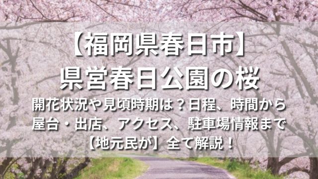 さくら祭り・桜の名所・花見スポット【福岡県春日市】県営春日公園の桜 2025年の開花状況や見頃時期は?屋台・出店、駐車場まで【地元民が】全て解説! この記事では、福岡県春日市の人気花見スポット、春日公園の桜2025年の開花状況や見頃時期、イベントの日程、時間、場所などの基本情報から屋台・出店、混雑状況、アクセス、駐車場情報まで【地元民が】全て分かりやすく解説します。さくら祭り・桜の名所・花見スポット