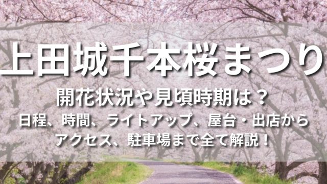 さくら祭り・桜の名所・花見スポット上田城千本桜まつり2025年の開花状況や見頃時期は?屋台・出店、駐車場、ライトアップまで全て解説! この記事では長野県上田市のお花見スポット、上田城千本桜まつり2025の開花状況やライブカメラ、見頃時期、イベントの日程、時間、場所、ライトアップなどの基本情報から屋台・出店、アクセス、駐車場情報まで全て分かりやすく解説します。さくら祭り・桜の名所・花見スポット